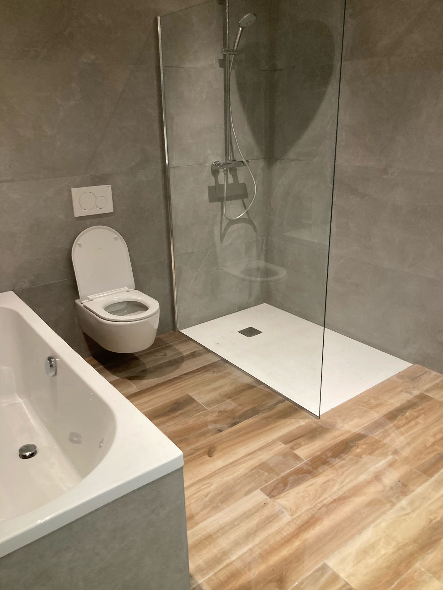 - Pose de la baignoire et des sanitaires : installation de la baignoire, du lavabo, du WC et de la robinetterie.